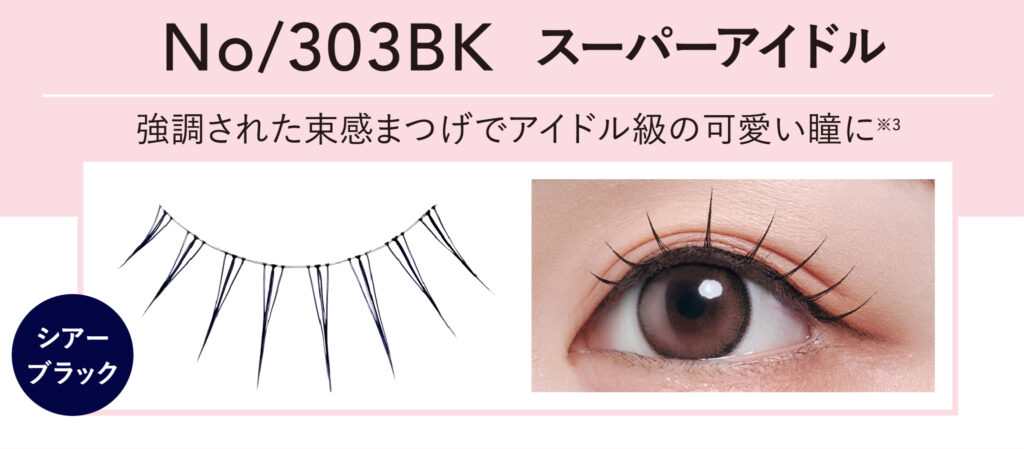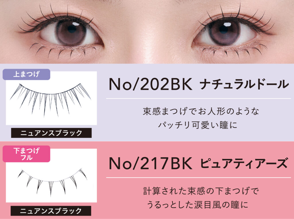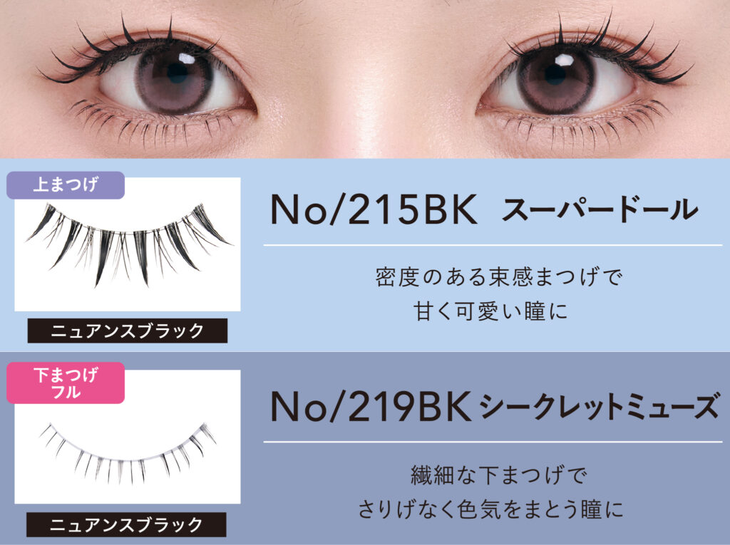 ボトムラッシュは、4種の異なる目元表現を用意。インフィニティラインの上まつげと組み合わせることで、アイドルからギャルまで、自分だけの目元スタイリングが完成します。